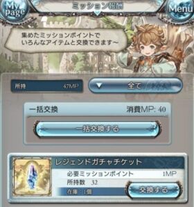 40ポイントで1ロット交換可能で、ガチャチケ1枚が含まれています。日頃から忘れずにデイリーを消化して貯めておきたいですね。